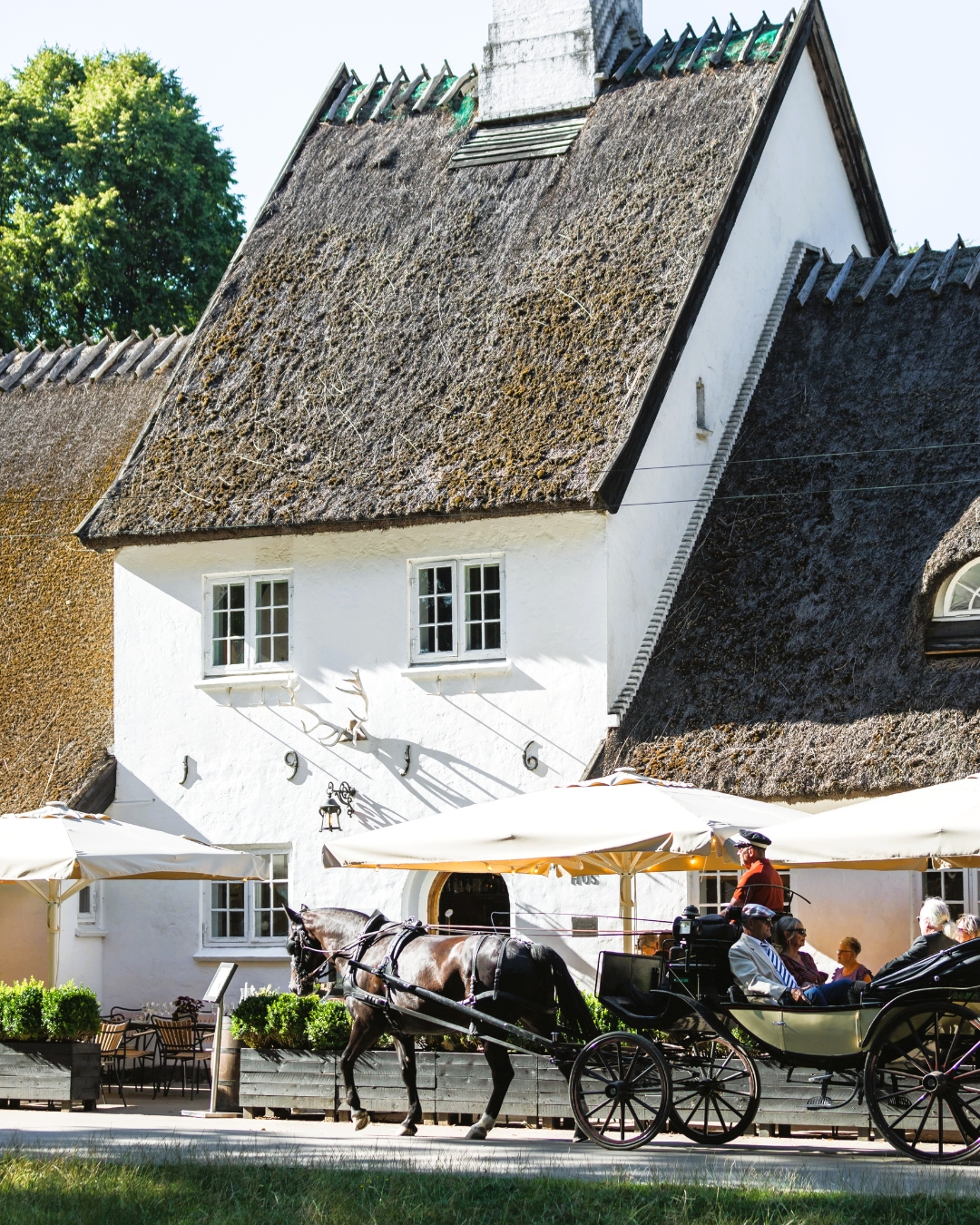 A 100-year-old inn at Dyrehaven's edge serving modern almanac cuisine with star-reviewed smørrebrød. Foraged ingredients, venison from the forest, and fresh fish in bright surroundings.