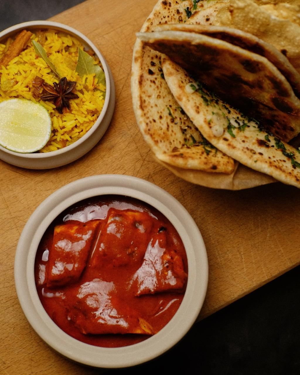 A modern take on South Asian dining at Åboulevarden. Twelve small dishes on a traditional thali platter guide you through vibrant curries, textures, and spices in a social feast.